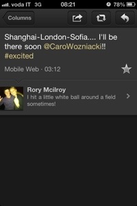 Sarò un inguaribile romantico ma quando vedo una coppia di personaggi famosi, come Rory Mcilroy e Carol Wozniaki (ok se non seguite lo sport o seguite solo il calcio questi due nomi non vi diranno molto, si tratta di una buona tennista e di uno dei più grandi golfisti) che si comportano con le stesse piccole attenzioni di una coppia di loro coetanei “normali” mi mette una piacevole allegria. Ve ne avevo già parlato in QUESTO POST, nel caso non ve lo ricordaste. Guardate un tweet di qualche giorno fa del grande Rory
