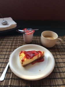 Iniziamo questo sabato, che sembra una domenica, facendo colazione sul recuperato balcone con la cheesecake fatta in casa 🙂