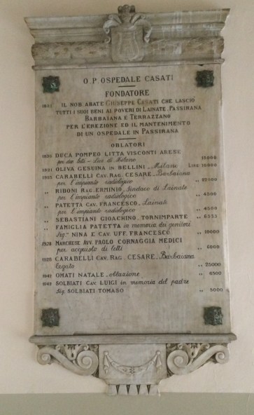 Periodicamente mi capita di frequentare una sede distaccata della ASL i cui uffici sono presso il vecchio ospedale di Passirana. Ogni volta la stele che vedete nella foto attira la mia attenzione. Non tanto per il ringraziamento per i benefattori, quanto per la precisione di voler indicare puntualmente la donazione. L’importo in lire, che ai tempi doveva essere davvero importante. Mi fa sempre sorridere.