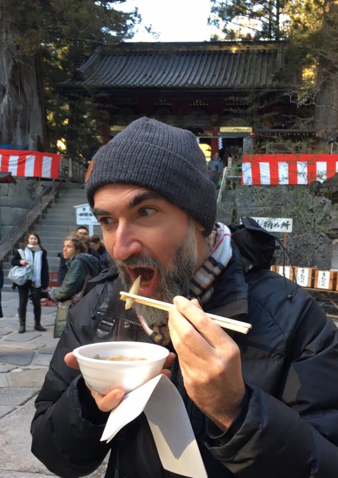 Il paese è dominato da una serie di templi buddisti e shintoisti. Nonostante ci fossero diversi restauri in corso, la visita è stata sicuramente giustificata. Seguiranno maggiori foto. Per ora vi basti quella in cui divoro una zappetta vegetale alle tre del pomeriggio (devastato dalla fame ma… quello c’era)