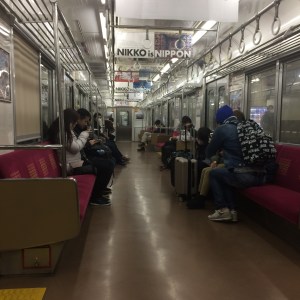 Oggi gita fuoriporta a Nikko. Ci siamo spostati in treno. La prima parte con il velocissimo Shinkansen, poi con un trenino locale che in fondo ha i vagoni della metropolitana