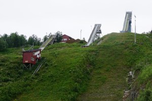 Guardando l'isola principale da lontano, avevo notato dei trampolini per il salto con gli sci (sport molto diffuso nei paesi nordici). Essendo sempre stato affascinato da questo tipo d'impianti, ho convinto Mrs Puck ad una passeggiata per andarli a vedere. Alla fine è stata una deviazione molto più piacevole del previsto. Per arrivarci, abbiamo infatti dovuto percorrere un sentiero che d'estate è fatto per le passeggiate ed in inverno è una pista da fondo (regolarmente illuminata). Tra un bosco e un laghetto, si arriva anche ai piedi dei trampolini. L'impressione è che siano quasi abbandonati ma un paio di particolari fa pensare che forse in inverno possano venire ancora attivati. Tra una teleferica scalcinata e scalette in legno, è stata una deviazione molto affascinante.