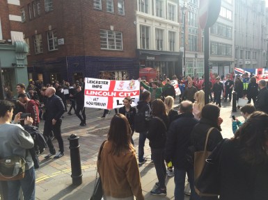 Sabato passeggiavamo per Londra, nella zona del Covent Garden e siamo stati, gioiosamente quanto alcolicamente investiti dalla parata dei tifosi del Lincoln City, che nel pomeriggio avrebbe giocato con l’Arsenal il quarto di finale della FA Cup. Si tratta di una squadra della quinta divisione inglese, che occhio e croce potremmo paragonare alla nostra serie D.