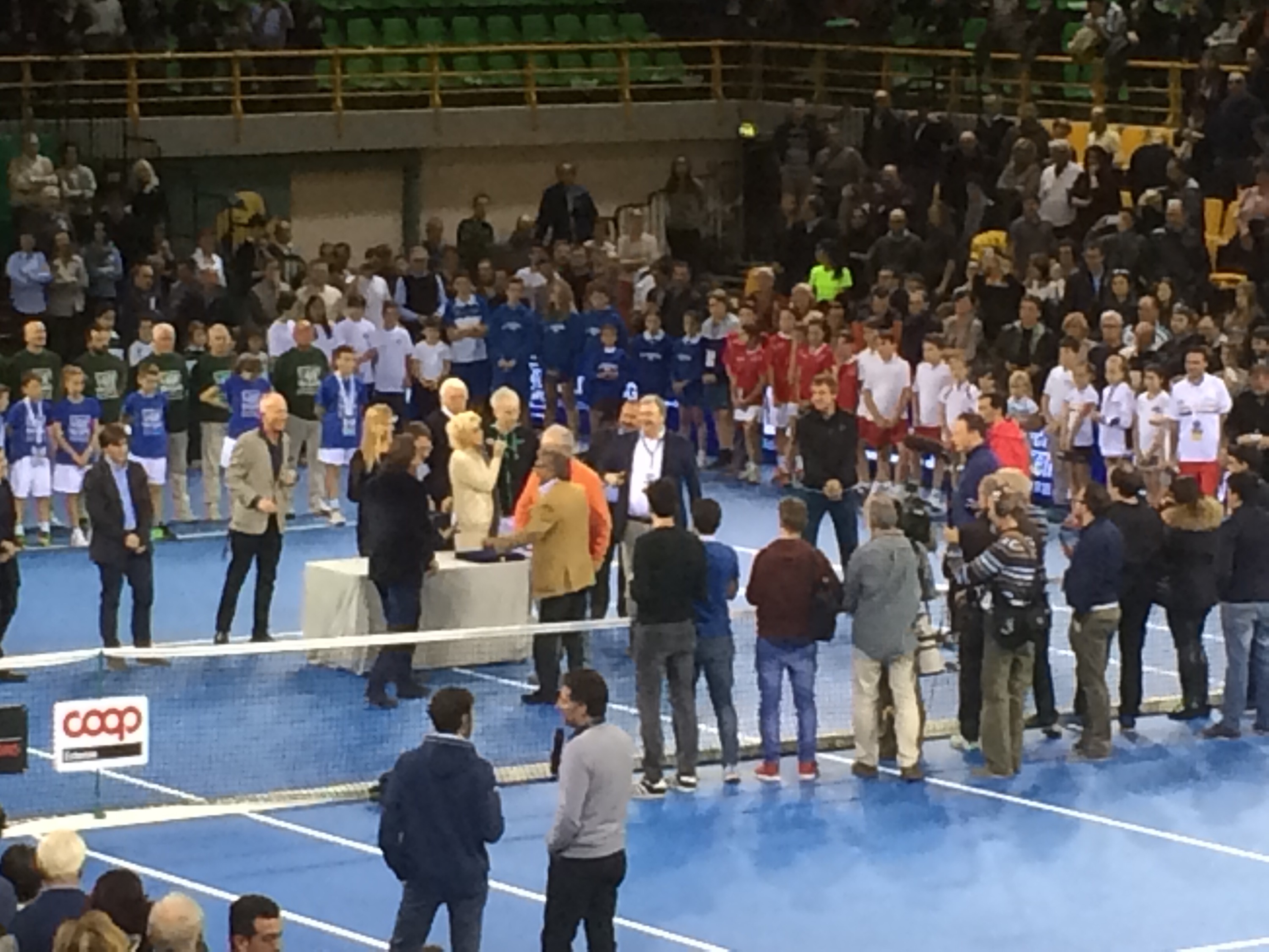 Ieri sono stato a Modena per la finale della tappa italiana dell’Atp Champions Tour, il circuito delle vecchie glorie. Dico subito che è stato uno spettacolo davvero divertente, con due match molto di diversi tra loro. La finale 3/4 posto era tra Leconte, che ha intrattenuto il pubblico non solo coi suoi colpi ma anche facendo parecchio il buffone, e Wilander. Questa è stata l’esibizione più giocosa, in cui si sono alternati colpi di grande tocco e simpatici siparietti. La finale invece vedeva di fronte McEnroe e Bruguera. Partendo da casa pensavo che il quarto fosse Noah, ma ho scoperto che si è infortunato in settimana ed è stai rimpiazzato all’ultimo dallo spagnolo, non certo il più spettacolare tennista che ricordi. La classe non è acqua e lo statunitense, più vecchio di quasi vent’anni, ha vinto in due set, al termine di una partita vera in cui si sono visti davvero dei bei colpi. Se rifanno la manifestazione l’anno prossimo sicuramente ci torno. Insomma: ho visto cantare Paul McCartney, ho visto giocare Gretkzy, ora posso dire di aver visto giocare anche McEnroe
