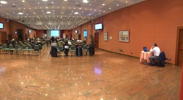 Ieri ero a un corso di aggiornamento, anche discretamente gremito (a dispetto di quanto sembri dall’immagine). Io capisco che per qualcuno raggiungere le ore minime imposte per la formazione obbligatoria sia un peso, però il tipo che vedete sulla destra li batte (quasi) tutti. Ha spostato una sedia e un tavolino, ha attaccato il portatile alla presa elettrica ed ha iniziato a farsi i fatti suoi.