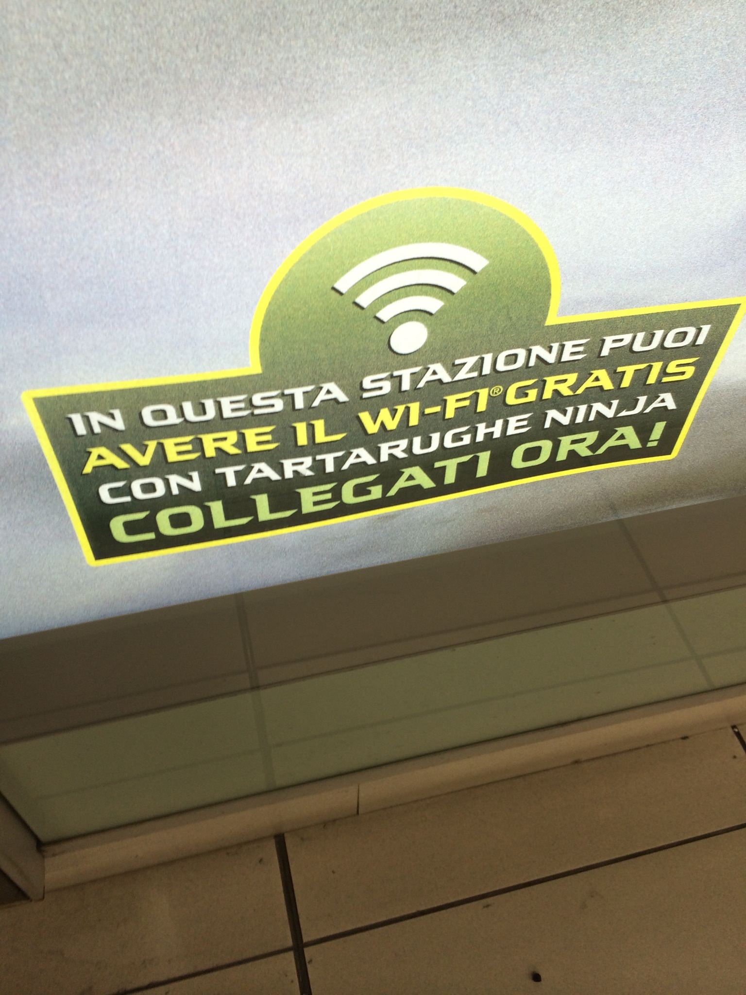 Oggi passavo nella stazione metropolitana di duomo. Il 100% della cartellonistica è stata presa per il lancio del nuovo film delle Tartarughe Ninja. Quella stazione non è nuova a promozioni del genere: sotto natale è capitato fosse monopolizzata da sephora. La novità sta in quello che vedete nella foto: