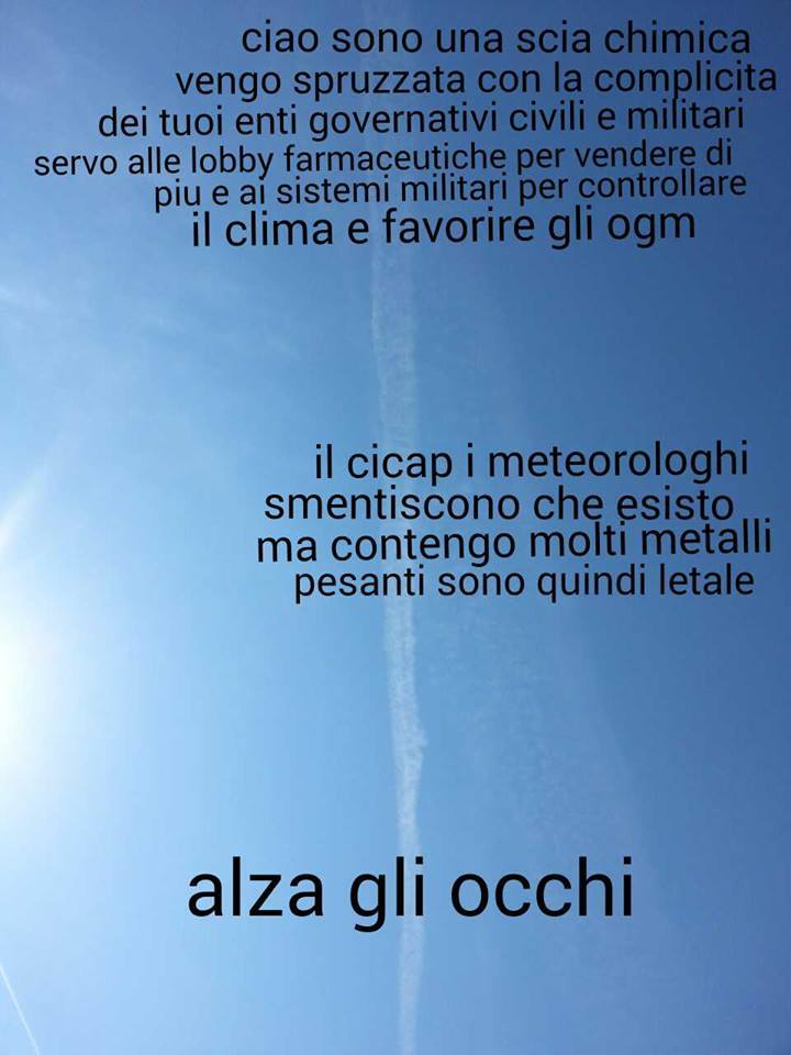 Quelle che noi “creduloni” pensiamo essere scie di condensazione degli scarichi degli aerei, in realtà sono nubi chimiche rilasciate appositamente dagli aerei. Queste sostanze consentirebbero di far proliferare malattie e consentire il controllo del clima ma… anche della mente!