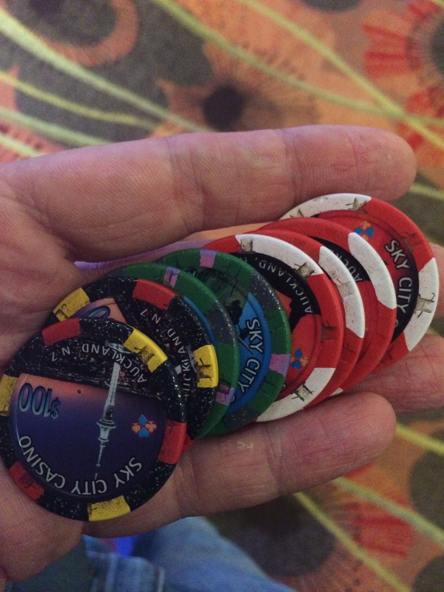 Che cavolo! Alla fine lo so che live, se gioco concentrato, non sono l’ultimo dei fessi! Tornato sul luogo del delitto di ieri, lo skycity casino di Auckland, e questa volta sono arrivato secondo. Certo non è stata facile e più volte mi sono trovato sul punto di uscire. Certo ho avuto qualche mano fortunata ma del resto senza quelle no si va da nessuna parte. Ho anche rischiato di uscire con AQ in mano, QQ3 sul piatto e trovando 33 dall’altra parte. Però sono stato bravo, non mi sono infilato in mani stupide, ho foldato mani difficili da foldate e alla fine mi sono trovato all’heads up da cortissimo contro un asiatico insopportabile. Va bene così. Il bilancio di due giorni è positivo e domani la maglia degli all blacks è pagata.