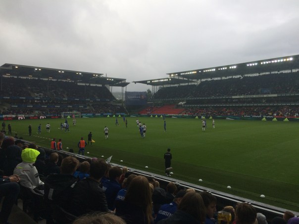 Trondheim ci ha accolto, all’arrivo del nostro treno notturno, nel modo peggiore: con uno tempo di melma. Dovevano però riempire la giornata. Abbiamo visitato la cattedrale, siamo andati al museo d’arte moderna, girato il quartiere storico e passeggiato sul ponte vecchio. Tutto sotto la pioggia. Abbiamo quindi scoperto e preso una bella linea tranviaria che arrivava fin sopra la città, in un punto da cui partirebbero (se il tempo lo consentisse) diverse passeggiate. Ok, a quel punto erano le 15… proprio girando in tram ho però visto in lontananza il grande stadio. Piccola ricerca e illuminazione: andiamo a vedere una partita di campionato del Rosemborg! Squadra costantemente nelle coppe europee e che giusto qualche giorno prima aveva battuto, a domicilio, l’Ajax. Bello stadio, bel tifo, peccato abbia perso 0-1 con un autogol con doppia deviazione….