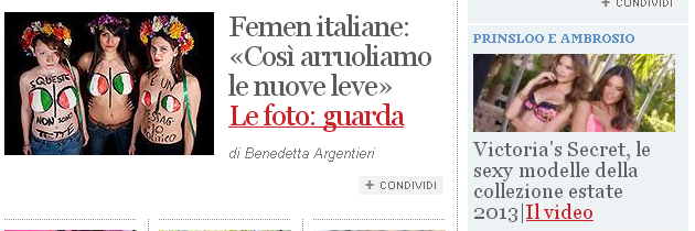 Da qualche settimana, atteso come l’avvento del Messia, ha aperto il primo negozio milanese di Victoria’s Secret. Dopo aver visto delle foto della ressa all’inaugurazione, ci sono passato davanti l’altro giorno. A quanto pare ormai è il sogno, neppure tanto proibito, delle adolescenti che vogliono sentirsi un po’ suine. Niente di male (anzi) però, nonostante apprezzi alcuni capi, devo dire che anche in questo campo la classe italiana (o anche europea) per la moda è superiore. Però resta il fenomeno di costume e quell’alea di “trasgressione a portata di mano” che questo brand trasmette. Chi sono io per contestarlo? Anzi…